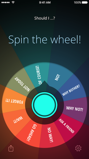 Can't decide? Or afraid of making the wrong choice? The original Decide Now! app is here to help you! Create your question, add answers, spin the wheel and see what comes up!